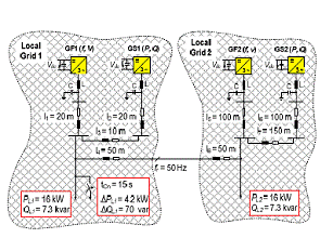 圖6 兩個(gè)微型電網(wǎng),每一個(gè)包含一個(gè)電網(wǎng)形成方式逆變器和一個(gè)電網(wǎng)支持方式逆變器