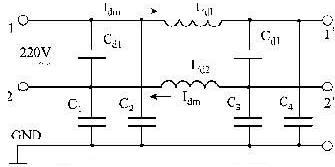 上述無(wú)源EMI濾波器是互易的,它既能抑制電子鎮(zhèn)流器的電磁干擾送入電網(wǎng),又能抑制電網(wǎng)內(nèi)的電磁干擾進(jìn)入電子鎮(zhèn)流器中。