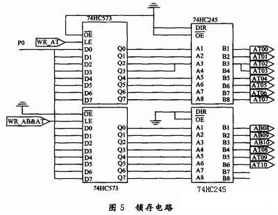 繼電器譯碼電路的作用是在單片機的控制下將1 536個測試點中的某兩個測試點接入相應(yīng)的測試電路。比如譯碼電路選中測試點1的輸入繼電器Kat和測試點2的輸出繼電器Kab,外部的被測電纜通過這兩個測試點接入相應(yīng)的測試電路,從而實現(xiàn)了導(dǎo)通或者絕緣測試。為了實現(xiàn)這樣的功能譯碼電路可以分為地址鎖存電路,輸入繼電器譯碼電路和輸出繼電器譯碼電路。以輸入地址鎖存電路為例,其原理如圖5,圖6所示。