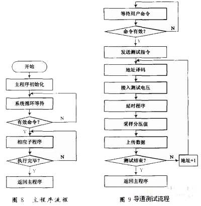 絕緣測試部分的工作流程和導(dǎo)通測試類似,但是需要特別注意的是在執(zhí)行絕緣測試命令時,系統(tǒng)首先會對測試區(qū)間內(nèi)的點進行一次導(dǎo)通測試,并記錄導(dǎo)通的通道號,這樣在工控機向單片機發(fā)送地址指令時會自動跳過這些通道,從而保證操作人員和被測產(chǎn)品的安全,防止高壓短路可能引起的災(zāi)難性后果。