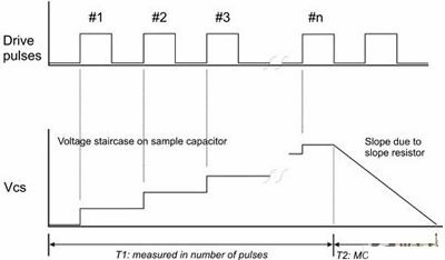 和RC及AC技術(shù)相同,單端電荷轉(zhuǎn)移電容傳感器也是在每個(gè)感測(cè)通道采用一個(gè)電極板,但不依賴于時(shí)序測(cè)量或放大器,而是采用互補(bǔ)式金屬氧化物半導(dǎo)體(CMOS)開(kāi)關(guān)把電荷泵入Cx,并把電荷轉(zhuǎn)移到一個(gè)參考采樣電容(Cs)中。透過(guò)計(jì)算Cs達(dá)到預(yù)先設(shè)定的電壓值所需的周期數(shù),就可很容易求得電荷電平,且這個(gè)周期數(shù)與Cx成反比。眾所周知,電荷轉(zhuǎn)移方法有助于抑制泄漏電流的影響,而且由于其采用一個(gè)很大的Cs作為檢測(cè)器,這個(gè)檢測(cè)器相當(dāng)于對(duì)外界的一個(gè)低阻抗,故其抗外部電氣噪聲的能力非常強(qiáng)。
