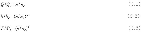 由流體力學(xué)可知,風(fēng)量Q與轉(zhuǎn)速一次方成正比,壓力h與轉(zhuǎn)速的平方成正比;