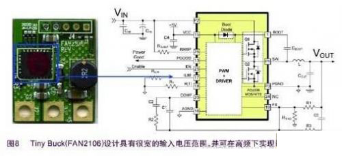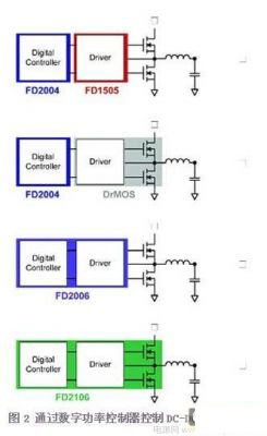 3.最終全集成開關(guān)將使功率級(jí)設(shè)計(jì)更迅速易行。除了Digital-DC系列的FD2106之外,F(xiàn)AN210x TinyBuck系列也可為3A FAN2103和6A FAN2106應(yīng)用提供全集成同步降壓功能(圖8)。