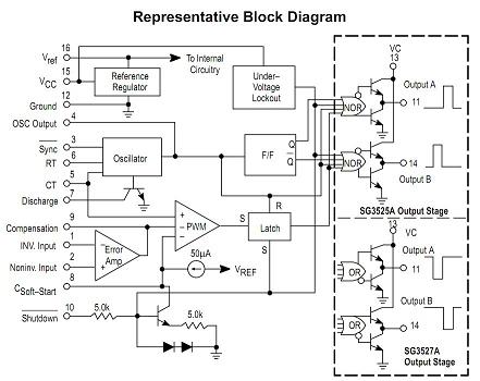 圖 4 SG3525 引腳和內(nèi)部結(jié)構(gòu)圖