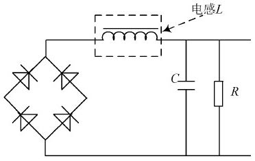 即功率因數(shù)校正( Pow er Factor Correct ion, PFC)是指有效功率與總耗電量( 視在功率) 之間的關(guān)系, 也就是有效功率除以總耗電量( 視在功率) 的比值。無源PFC 是指不使用晶體管等一些有源器件組成的校正電路, 一般情況下由二極管、電阻、電容和電感等無源器材組成。本文的PFC 主要是在整流橋堆和濾波電容之間加1 個(gè)電感, 具體原理如圖3 所示, 利用電感上的電流不能突變的特性來平滑電容充電強(qiáng)脈沖的波動(dòng), 改善電路中電流的畸變,并且利用電感上的電壓超前于電流這一特性來補(bǔ)償濾波電容電流超前電壓的特性, 使功率因數(shù)和電磁干擾都得以改善。