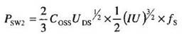 式中 I 為 正向電流有效值,RDS(on)為通態(tài)電阻,fS為開關(guān)頻率,CGSS為輸入電容,Coss為輸出電容,D為占空比??梢?,正向?qū)〒p耗與RDS(on)成正比。不同VDS的MOSFET, RDS(on)往往可相差幾個數(shù)量級,所以相同電路拓撲中采用100V MOSFET的損耗比采用200VMOSFET明顯要低??紤]到低VDS的MOSFET比高VDS MOSFET的Coss要小,據(jù)關(guān)斷損耗式,表明低VDSMOSFET的關(guān)斷損耗也小。驅(qū)動損耗式為開關(guān)過程中輸入電容充放電引起的損耗,該損耗與柵一源驅(qū)動電壓的平方成正比。由于采用了兩級變換器,對隔離級來說,因穩(wěn)壓級己經(jīng)將較寬的輸入電壓穩(wěn)在固定的中間總線電壓上,變壓器的變比可以達到最佳。