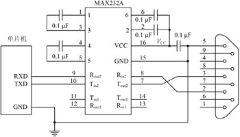 圖6 單片機(jī)與MAX232A硬件連接電路