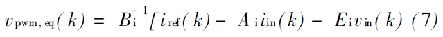 式中, 輸入電流i in ; 整流控制電壓v pw m; 輸入電源電壓vin 都代表參加同步dq 參照系數(shù), A i, Bi 和Ei, 為系統(tǒng)確定的電路參數(shù)。鑒于當前的逆變命令i ref ( k) ,DSMC 仿真相當于控制式如下: