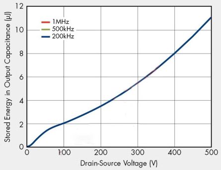 過去,許多設計人員都使用粗略假設來提供等效輸出電容值,因為輸出電容通常都指定為25V漏源電壓。不過,傳統(tǒng)的等效輸出電容值在實際應用中卻沒有多大幫助,因為它隨漏源電壓變化,并且在開關導通/關斷期間不能提供準確的儲能信息。在功率轉換器工作電壓下,新定義的輸出電容提供等效的儲能,能夠實現(xiàn)更優(yōu)化的功率轉換器設計。