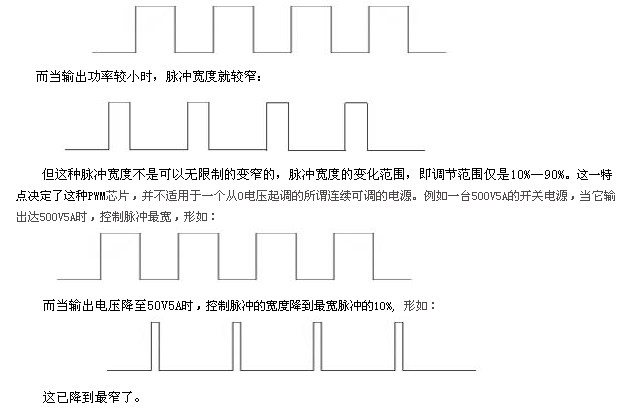 但所謂PWM芯片,是一種脈寬調(diào)制器,當(dāng)輸出電壓較高,輸出電流較大時(shí),電源內(nèi)部的開關(guān)管開通時(shí)間較長而關(guān)斷時(shí)間較短: