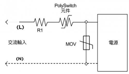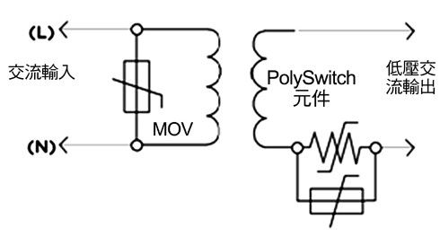 在照明系統(tǒng)中采用第二類功率源可成為降低成本、提高彈性的重要因素之一。固有的有限功率源,如變壓器、電源供應(yīng)器或電池等,可以包含保護(hù)組件,只要不依靠它們限制第二類功率源的輸出即可。非固有型的有限功率源,按照定義,具有一個(gè)分立保護(hù)組件,當(dāng)電流和能量輸出達(dá)到預(yù)定值時(shí)它會(huì)自動(dòng)中斷輸出,各種電路保護(hù)組件都有助于提供LED照明應(yīng)用第二類功率源的安全操作。圖4表示了一種協(xié)同保護(hù)策略的工作原理,它在交流輸入上采用了一個(gè)MOV,在輸出電路分支上采用了一個(gè)PolySwitch組件,可以幫助廠商滿足UL 1310第35.1小節(jié)針對(duì)開關(guān)和控制裝置的過(guò)載試驗(yàn)要求。