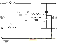 輸入濾波電路具有雙向隔離作用,它可抑制從交流電網(wǎng)輸入的干擾信號,同時也防止開關(guān)電源工作時產(chǎn)生的諧波和電磁干擾信號影響交流電網(wǎng)。電路如圖7所示,是一種復(fù)合式EMI濾波器,L1、L2和C1構(gòu)成第一級濾波,共模電感TR和電容C2、C3進行第二級濾波。C1主要用來濾除差模干擾,選用高頻特性較好的薄膜電容。電阻R給電容提供放電回路,避免因電容上的電荷積累影響濾波器的工作特性。C2、C3跨接