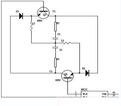 本實(shí)驗(yàn)中,選用兩個(gè)小功率NPN管C1815(Q1、Q2)來(lái)替代開(kāi)關(guān)管,用89C51芯片的P1.0和P1.1腳控制Q1、Q2的開(kāi)關(guān)。同時(shí),蓄電池的端電壓V1和V2由差動(dòng)放大電路采集,經(jīng)A/D轉(zhuǎn)換送到CPU。在整個(gè)過(guò)程中,電壓每20ms采樣一次,每隔1s上傳上位機(jī)并保存并自動(dòng)繪制曲線。圖5為試驗(yàn)電路圖。