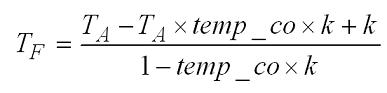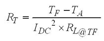 這里要注意的一件事情是電感器的功耗是其線圈電阻的函數(shù),后者會隨著溫度發(fā)生變化。因此,需要考慮計(jì)算電感器在給定RT的TF。將RT的等式插入電感電阻與溫度等式并求解TF可以得出: