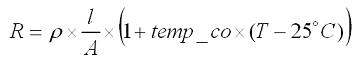 電感線圈的電阻溫度系數(shù)導(dǎo)致電感直流電阻會隨著溫度變化。線圈通常為銅制,溫度系數(shù)約為 3.9mΩ/℃,計(jì)算其電阻的等式如下: