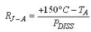 我們需要的是代表實(shí)際電路的準(zhǔn)確RJ-A。測量RJ-A有多種方法,一種方法是使用熱關(guān)機(jī)閾值,將其設(shè)置為+150℃。要用這種方法測量RJ-A,我們可以讓LM3554在已知功耗(PDISS)下工作,然后慢慢提高環(huán)境溫度直到器件關(guān)機(jī)為止。該器件具有一個內(nèi)部標(biāo)志,可以通過I2C兼容接口設(shè)置,在觸及熱關(guān)機(jī)閾值時會返回‘1’。使用這種方法獲得的RJ-A將為: