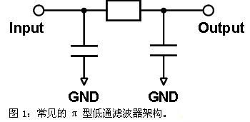為有效解決電子產(chǎn)品電磁干擾的問題,并能兼顧靜電放電(ESD)防護(hù)的功用,可以采用具有靜電放電防護(hù)功能的電磁干擾濾波器(EMI+ESD filter)。圖1所示即為常見的π型低通濾波器。在Input及Output端點(diǎn)之間的組件,可以是電阻或是電感組件。是采用電阻還是電感,應(yīng)視產(chǎn)品的實(shí)際應(yīng)用所需而定。