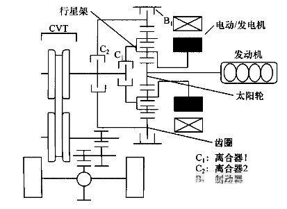 汽車動力傳動系統(tǒng)采用傳統(tǒng)的內(nèi)燃機和電動機作為動力能源,通過混合使用熱能和電能兩套系統(tǒng)開動汽車。在低速小功率運行時可以關(guān)閉發(fā)動機,采用電動機驅(qū)動;而高速行駛時用內(nèi)燃機驅(qū)動;通過發(fā)動機和電動機的協(xié)同工作模式,將車輛在制動時產(chǎn)生的能量轉(zhuǎn)化為電能,并積蓄起來成為新的驅(qū)動力量.從而在不同工況下都能達(dá)到高效率。一般上有串聯(lián)式、并聯(lián)式、混聯(lián)式和復(fù)合式4種布置形式。