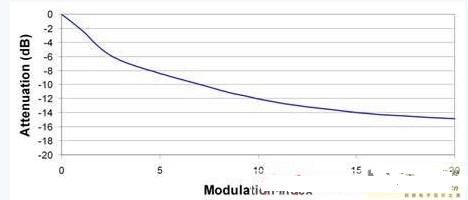 圖2:更大的調(diào)制指數(shù)可以進(jìn)一步降低峰值EMI性能。