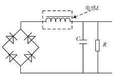即功率因數(shù)校正( Pow er Factor Correct ion, PFC)是指有效功率與總耗電量( 視在功率) 之間的關(guān)系,也就是有效功率除以總耗電量( 視在功率) 的比值。無源PFC 是指不使用晶體管等一些有源器件組成的校正電路,一般情況下由二極管、電阻、電容和電感等無源器材組成。本文的PFC 主要是在整流橋堆和濾波電容之間加1 個電感, 具體原理如圖3 所示,利用電感上的電流不能突變的特性來平滑電容充電強(qiáng)脈沖的波動,改善電路中電流的畸變,并且利用電感上的電壓超前于電流這一特性來補(bǔ)償濾波電容電流超前電壓的特性, 使功率因數(shù)和電磁干擾都得以改善。