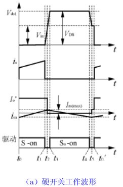 [t3~t4]期間變壓器初級(jí)線圈受到反向電壓vcs的作用,勵(lì)磁電流由正變負(fù)。t4時(shí)刻,sa斷開。