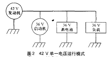 在新的電氣系統(tǒng)中,有兩種實(shí)施方案:一種是全車42V單一電壓方案;另一種是42V/14V雙電壓方案。