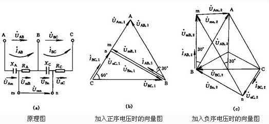 所開發(fā)的在線相序監(jiān)測元件,為能夠既可對380V環(huán)網(wǎng)供電系統(tǒng)電壓回路異常進(jìn)行檢測,又能同時(shí)適用于PT二次計(jì)量電壓回路(相間電壓為100V)的在線檢測工作,有必要對這兩種情況進(jìn)行進(jìn)一步分析。