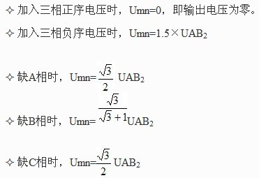 從表中可發(fā)現(xiàn),380V電壓回路發(fā)生反相序接線時(shí),Umn輸出電壓量最大;PT二次計(jì)量電壓回路發(fā)生B相缺相時(shí),Umn輸出電壓最小。