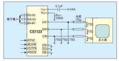 CS7123還有SYNC同步信號和BLANK黑電平控制信號這兩個附加的視頻控制信號,CS7123也具有一個待電模式。CS7123采用5V CMOS工藝制造,單片CMOS結(jié)構(gòu)確保了低功耗性能。CS7123的主要功能是將三路RGB信號轉(zhuǎn)換為模擬RGB信號后輸出到顯示屏顯示。另外,它也可以當作三路單獨的DAC使用。