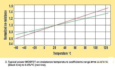 對于開關MOSFET和同步整流器兩者,都是選擇作為此迭代過程開始點的最大允許裸片結(jié)溫(TJ(HOT))。大多數(shù)MOSFET數(shù)據(jù)參數(shù)頁只給出25°C的最大RDS(ON),,但近來有一些也提供了125°C的最大值。MOSFETRDS(ON)隨著溫度而提高,通常溫度系數(shù)在0.35%/°C至0.5%/°C的范圍內(nèi)(圖2)。如果對此有所懷疑,可以采用更悲觀的溫度系數(shù)和MOSFET在25°C規(guī)格參數(shù)(或125°C的規(guī)格參數(shù),如果有提供的話)計算所選擇的TJ(HOT)處的最大RDS(ON):RDS(ON) HOT =RDS(ON) SPEC ×[1+0.005×(TJ(HOT)?TSPEC)]
