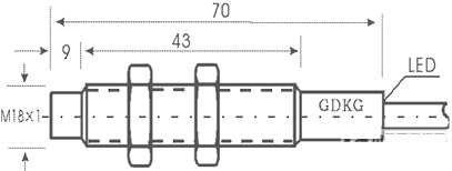 圖1 CLG型M18×70電容式接近開關(guān)外型圖