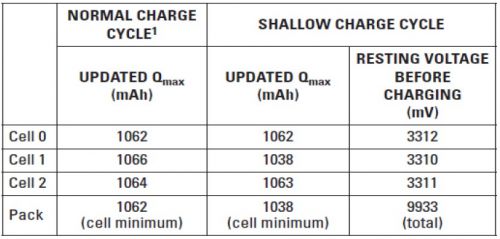 阻抗跟蹤算法將 Qmax 定義為電池的總化學(xué)容量,其以毫安小時 (mAh) 計算。一次正確的 Qmax 更新,必須滿足下列兩個條件: