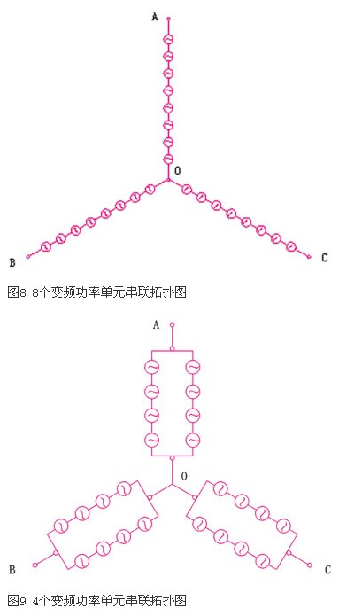 (2)同一個變流鏈中的各變頻功率單元輸出同相位、同頻率,而且電壓幅值相等;
