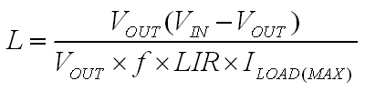 其中,VIN為輸入電壓,VOUT為輸出電壓,f為轉(zhuǎn)換器的開關頻率,LIR為電感紋波電流與設計的最大負載電流之比,ILOAD(MAX)為最大負載電流。