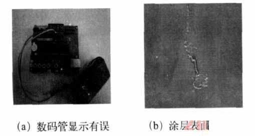 發(fā)現(xiàn)涂層有明顯的裂痕,數(shù)碼管的第二個(gè)數(shù)字“2”顯示有問(wèn)題,如圖3 所示。