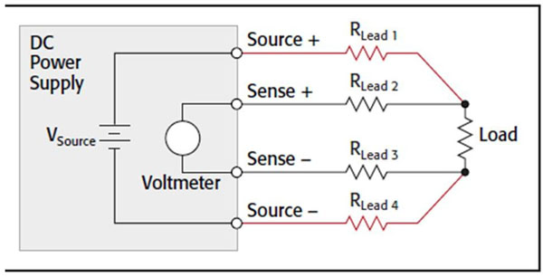 電源與被測器件(DUT)之間承載電流引起的電纜壓降意味著DUT電壓低于電源輸出端電壓。在任意電源條件下,使用較大尺寸線纜能降低測試線壓降。保持電纜盡量短也有幫助。如果電源配備了遠端感測能力,使用4線連接能確保電源的設(shè)置電壓即為在DUT上得到的電壓。