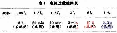 在漏電防火控制系統(tǒng)中,電流過載跳閘時(shí)間表見表1。