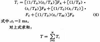 式中:i表示定時(shí)計(jì)數(shù)器的中斷個(gè)數(shù);Ti為一次中斷得到的時(shí)間總和,當(dāng)時(shí)間累加和大于等于1時(shí),說明事件應(yīng)該得到處理,處理發(fā)生在當(dāng)前事件所在區(qū)域內(nèi)。但從該式可以看出,并沒有反映電流過載熱效應(yīng)積累與長(zhǎng)延時(shí)過載電流和短延時(shí)過載電流在處理方法上的不同,無論是在20 min的跳閘還是10 s的跳閘都是在規(guī)定時(shí)間內(nèi)完成跳閘保護(hù)。為此,仍需要對(duì)上次進(jìn)行改進(jìn),為了能過反映,熱積累效應(yīng)采用反時(shí)限方法,即過載電流越大,跳閘時(shí)間越短。為了達(dá)到如此效果,將不同的電流過載下跳閘時(shí)間進(jìn)行細(xì)分,在1.2In~1.5In過載段內(nèi),將跳閘時(shí)間20 min劃分為20,19,18,…,1,同樣將對(duì)過載電流段劃分出20等分分別對(duì)應(yīng)各自的時(shí)間,同樣的方法應(yīng)用到其他電流過載段內(nèi),劃分的越密集,熱累計(jì)效果越快,跳閘時(shí)間越短。這就解決了在短延時(shí)電流過載時(shí)跳閘過慢的現(xiàn)象。于是公式變?yōu)椋?br /> 式(6)中的(t1/TA)由(t1/TA1)A1+(t1/TA2)A2+…,(t1/TA20)A20替換。式中:TA1,TA2,…,TA20代表等分時(shí)間;A1,A2,…,A20代表實(shí)際電流范圍狀態(tài)位,為1執(zhí)行相應(yīng)的加法運(yùn)算。同樣的B,C,D的轉(zhuǎn)化采用同樣的形式。