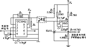 UC3842為電流型脈寬調制器,具有管腳數量少、外圍電路簡單、安裝與調試簡便、性能優(yōu)良、價格低廉等特點,特別適合用于低成本的小功率反激電路。由于該應用電路已極為成熟,此處就不詳加敘述。