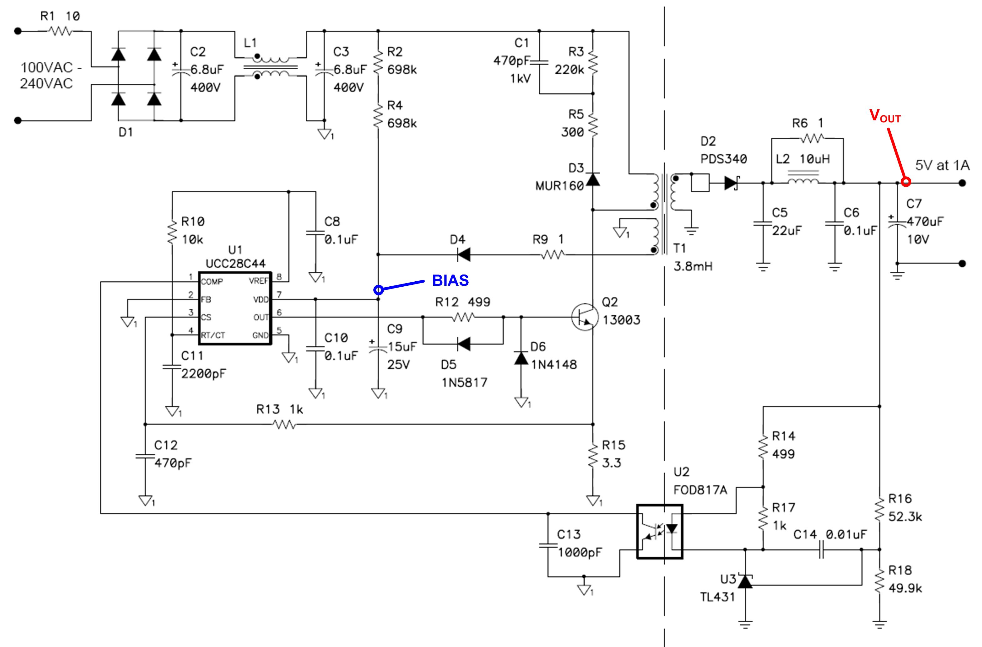 - 使用UCC28C44控制器