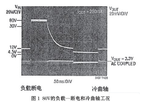 “冷曲軸”(cold crank)段,發(fā)生在汽車發(fā)動機經(jīng)受冷卻或凝固期間,發(fā)動機油變的非常粘滯。因而要求起動機輸出更大的轉(zhuǎn)矩,相繼需要蓄電池提供更大的電流。這一大的電流負載導致蓄電池/一次母線的電壓降低,甚至低于4V的點火電壓。隨后,又回復至額定電壓13.8V(圖1)。這在某些應用場合,例如發(fā)動電機控制、安全系統(tǒng)和導航系統(tǒng)均不可避免。故要求具有良好調(diào)節(jié)的輸出電壓(一般為3.3V)貫穿“冷曲軸”段,以實現(xiàn)全過程的無間斷(連續(xù))運行。