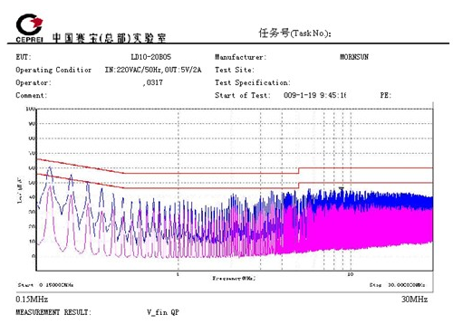 5. 具有較低的EMI性能。EN55011有l(wèi)evel B,level A兩個等級,level B比level A嚴苛得多。圖2、圖3是LD10產品的EMI測試數據,該數據由國家電子五所專業(yè)測試。測試結果可以看出,該系列電源具有較低的電磁輻射性能,達到EN55011,level B的要求。