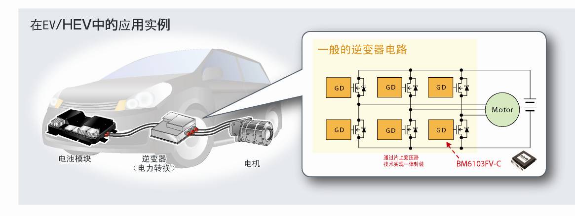 日本知名半導(dǎo)體制造商羅姆株式會(huì)社(總部位于日本京都市)開發(fā)出內(nèi)置絕緣元件的柵極驅(qū)動(dòng)器“BM6103FV-C”,最適合作為電動(dòng)汽車(EV)和混合動(dòng)力車(HEV)逆變回路中IGBT以及功率MOSFET的驅(qū)動(dòng)元件。
