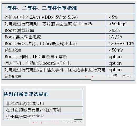 大賽宗旨為了使廣大工程師會員能全面了解和認識華芯邦公司及華芯邦電源芯片的優(yōu)勢 為電子工程師與業(yè)界專家及廠商進行探 討交流的機會,提高對技術(shù)知識的應(yīng)用 和產(chǎn)品商業(yè)化的認知,為此:特舉辦“ 華芯邦”杯移動電源電源設(shè)計大賽。旨 在充分發(fā)揮電源工程師的創(chuàng)新精神與移 動電源的高效設(shè)計?! ?br />