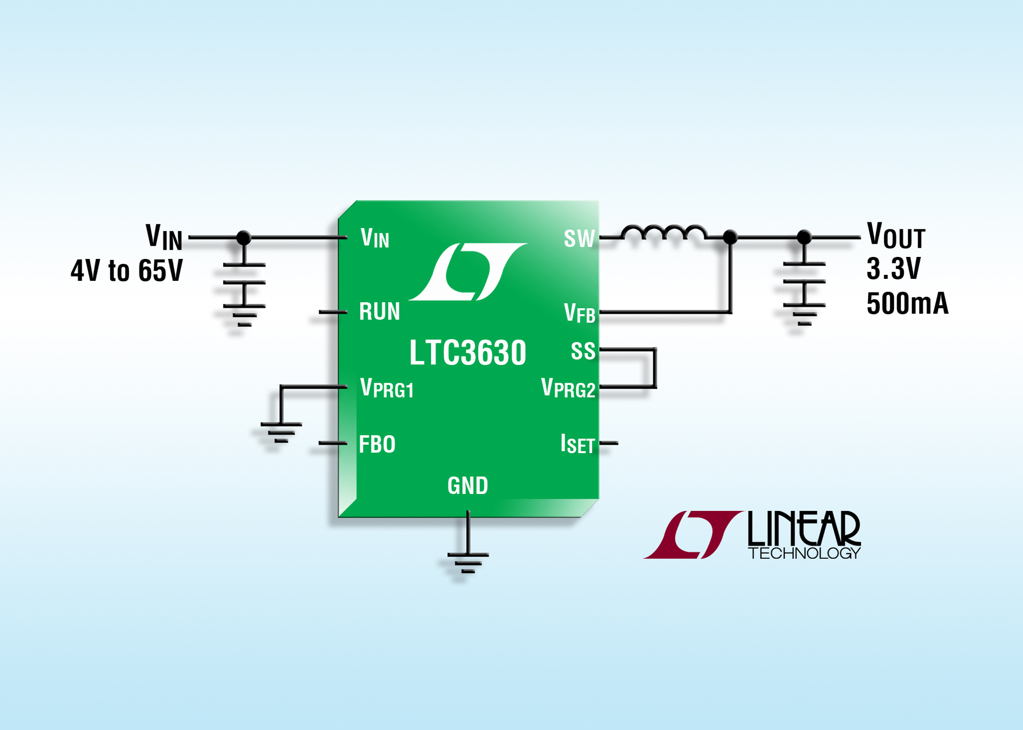 凌力爾特公司 (Linear Technology Corporation) 推出 65V 輸入的同步降壓型轉(zhuǎn)換器 LTC3630,該器件采用 16 引線耐熱性能增強(qiáng)型 3mm x 5mm DFN 或 MSOP 封裝,提供高達(dá) 500mA 的連續(xù)輸出電流。其內(nèi)部的同步整流拓?fù)涮峁┝烁哌_(dá) 90% 的效率,而在突發(fā)模式 (Burst Mode®) 工作時僅需要 12µA 靜態(tài)電流 (無負(fù)載情況下),從而最大限度地延長了電池運(yùn)行時間。LTC3630 在 4V 至 65V 的輸入電壓范圍內(nèi)工作,非常適用于多種應(yīng)用,包括汽車、工業(yè)、醫(yī)療和航空電子。