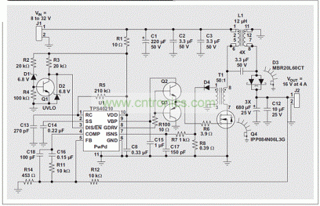 就非耦合電感設(shè)計而言,33-µH Coilcraft SER2918用于L1,而22-µH Coiltronics HC9 則用于 L2。它們的選擇均基于繞組電阻、額定電流和尺寸。選擇電感時,設(shè)計人員必須注意還要考慮鐵芯和 AC 繞組損耗。這些損耗可降低電感的有效DC電流,但并非所有廠商都提供計算所需的全部信息。錯誤的計算結(jié)果,會大大增加鐵芯溫度,使其超出典型的 40°C 溫升。它還會降低效率,并且加速過早失效現(xiàn)象的出現(xiàn)。