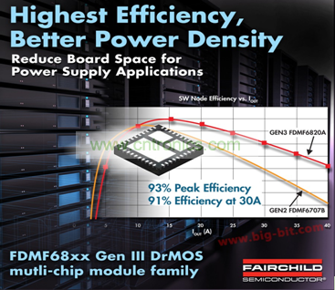 當能效標準逐漸成為電子產(chǎn)品新的緊箍咒,各大電源半導(dǎo)體廠商不得不面對電源管理技術(shù)的全新挑戰(zhàn)。飛兆半導(dǎo)體 FDMF68xx Gen III DrMOS多芯片模塊(MCM)系列經(jīng)設(shè)計能夠降低輸出感量和減少輸出電容器數(shù)目,與普通分立器件解決方案相比,該系列能夠節(jié)省多達50%的線路板空間,并提高效率,以期滿足新能源標準要求。使用飛兆半導(dǎo)體的高性能PowerTrench® MOSFET技術(shù),F(xiàn)DMF68xx系列能夠顯著減少開關(guān)振鈴(switch ringing),省去大多數(shù)降壓轉(zhuǎn)換器應(yīng)用中使用的緩沖器電路。FDMF68xx系列配合針對刀片式服務(wù)器、高性能筆記本電腦、游戲主機和負載點(point-of-load)模塊的新能源標準和系統(tǒng)規(guī)范,正在推動業(yè)界對更高效率、更大電流、更高開關(guān)頻率以及更大功率密度的需求。