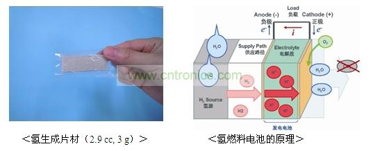 此次開發(fā)的氫燃料電池,使用了加水即可產(chǎn)生氫的固體,可利用水的合成進行發(fā)電,因此,發(fā)電時的生成物僅僅是水(水蒸氣),不會產(chǎn)生二氧化碳和有害物質(zhì)(揮發(fā)性有機化合物:VOC)。廢棄時亦可作為一般垃圾處理,是極為環(huán)保的燃料電池。