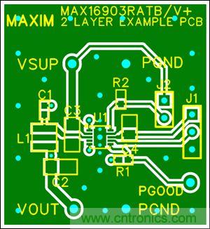 針對(duì)開(kāi)關(guān)穩(wěn)壓器MAX16903(圖9)外圍元件的合理布局,有助于從源頭降低噪聲和電磁輻射,有助于節(jié)約項(xiàng)目評(píng)估階段的寶貴時(shí)間,簡(jiǎn)化設(shè)計(jì)。