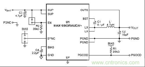 本文以MAX16903/MAX16904開(kāi)關(guān)穩(wěn)壓器設(shè)計(jì)為例,介紹優(yōu)化系統(tǒng)性能的布板原則。